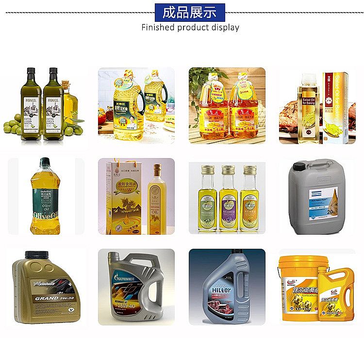 全自動食用油灌裝設備適用于灌裝各種油類,如菜籽油、食用油、大豆油、花椒油、玉米油、調和油等油類的定量灌裝。